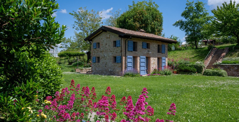 La Casetta is our small stone house at Podere Prasiano, nestled among vineyards and gardens in the hills of Emilia.